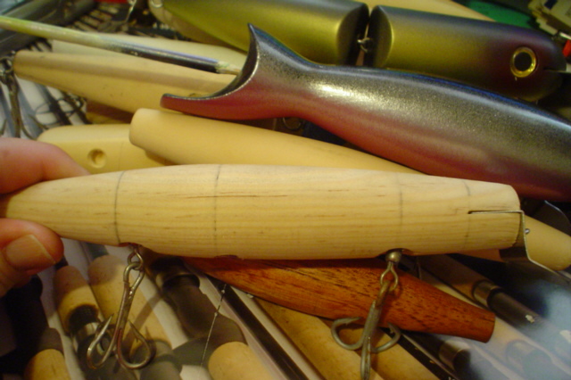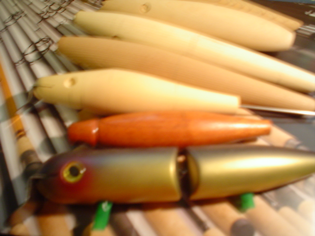 like the skinny profile ,,, is it rolly ? You get it to swim ... That little dark one with the big eye is interresting .. Lots of unfinished stuff there .. Looks like the Proffesor's cave . I thought he was going commercial making plug kits ..