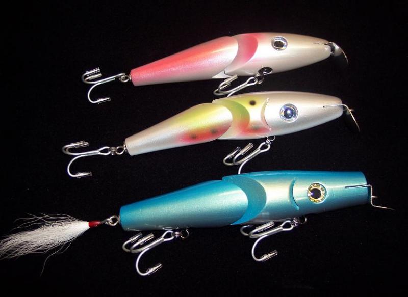 Larry those are fantastic. I too tried freehand mackeral lines. Seemed to be OK . I think if I had a good airbrush for detail they would of came out better. what gun have you been using? I've been toying with a recessed joint for a tihgter fit and also making a 2 -piece jointed to take apart to fit in plug bag then join when fishing. Thinking of a Breakaway clip. Trying to find an easier way to carry 10" jointeds. On the positive side of a joint farther apart is that the plug would fold over an fit in the tube on one half and lay across the top of the tubes. You know it's winter . Too much time to think.