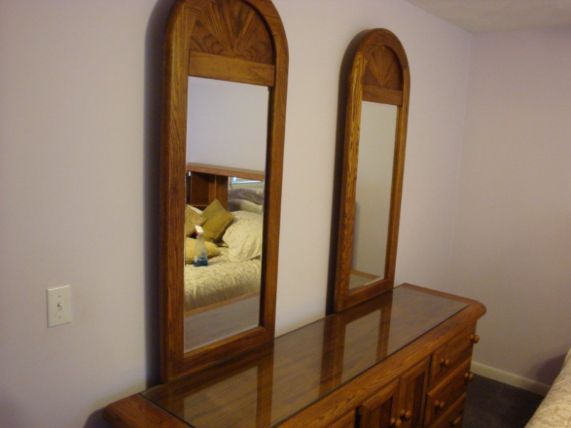 Mission Oak Triple Dresser 76" Long x 20" Deep and 31" high. Has 2- 52" High x 22" Wide Mirrors that bolt from rear and sit on top for a combined height of 83".