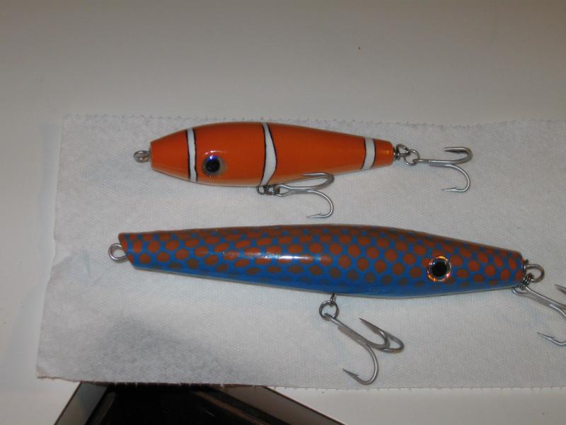 Finally finished these, which are the first two I have done since my son was born. The spook is a Salty's Kit, and the Pencil Popper is one I did over at biteme's place. I can't wait to bring these to the canal next week.