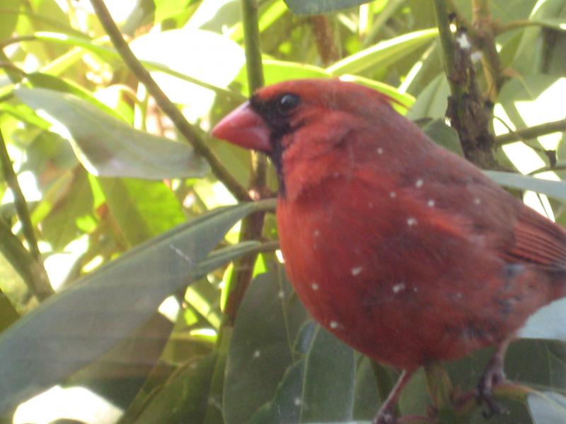 One of the more interesting aspects of backyard birdwatching is if you have trees nearby that birds are nesting in, you will eventually see what the young birds look like. For example, young cardinals are colored like the female. Another is when sparrows leave the nest, they don't leave the area. They will continually try to get the parents to feed them like they did when in the nest. (If you see a sparrow hunched down with its wings fluttering by its side with its mouth wide open, that a "fledgling" that is trying to sponge a free meal from mom and dad.