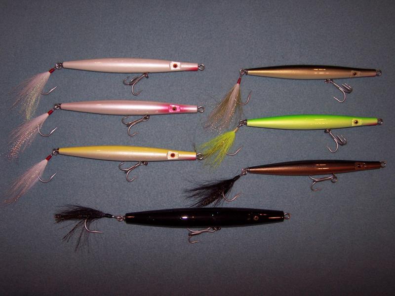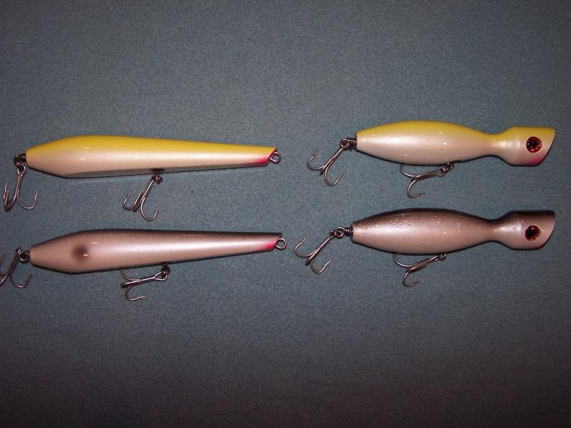 Some for the CanalThe Polaris poppers are loaded up with lead. and some Pikies....the top one I messed up on the curve so I planed it straight and uses a different lip.....swims pissah so i think I'll be making more next year.