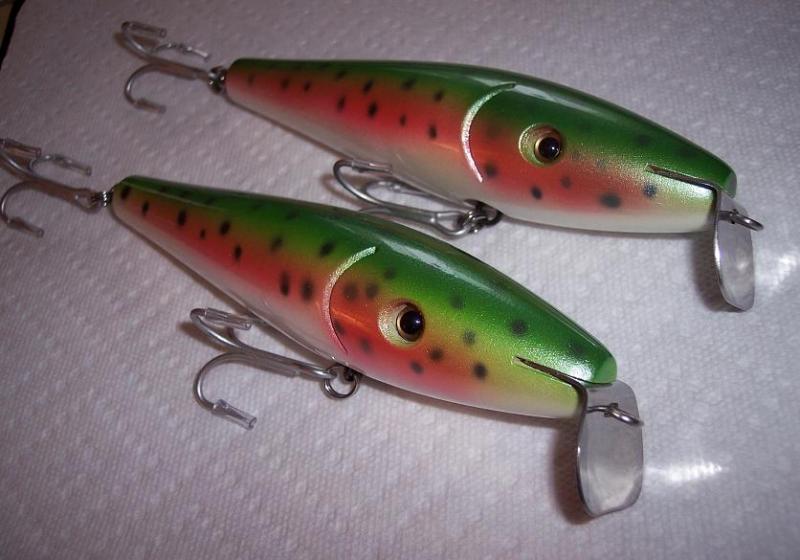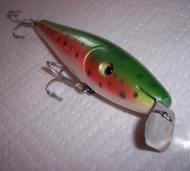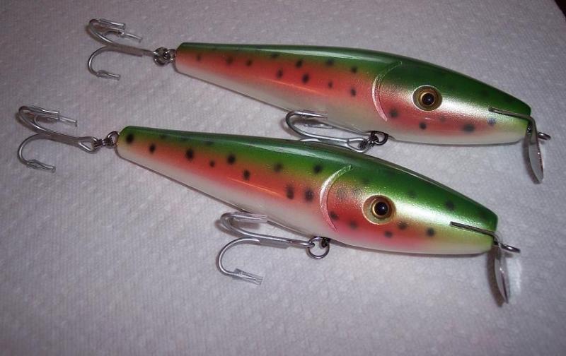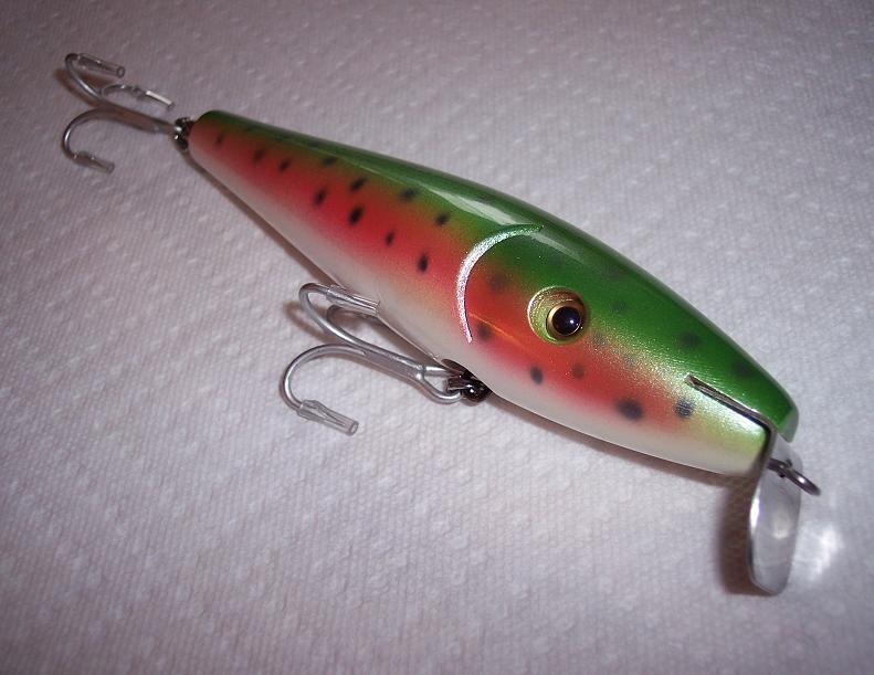 In the late 70's Pradco (Rebel) came out with a spray painted rainbow trout pattern for a short time on the 6 and 7 inch super windcheater series (F80 and F90). Very similar to yours Larry and they were killers on Stripers.