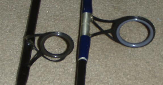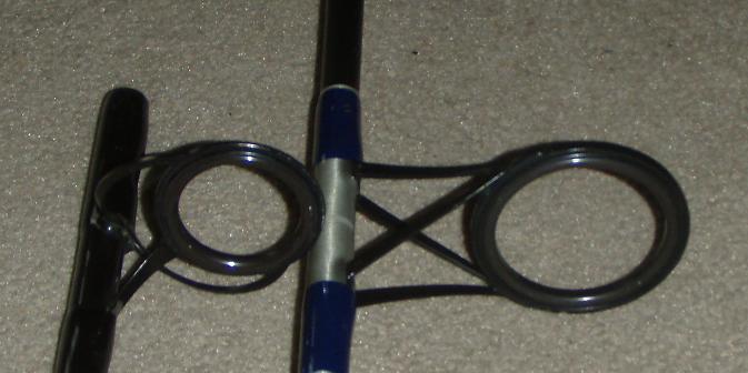 I understand "Cone of flight" being critical with mono.. I was hoping braid, not having any memory wouldn't be as critical .. This rod is well built and seems hardly fished .. not a scratch . Its useless to me set up for mono ..I only know 2 people in the whole world still plugging mono . Anyone want to trade an Allstar 1208 blank for this .. Pics are compared spacing to a lami triflex (a 10 footer braid friendly ) .. pics compare 1st,,2nd guide,,pic of wrap ..