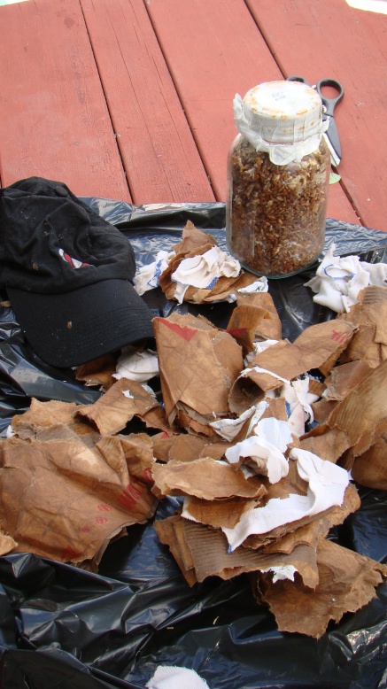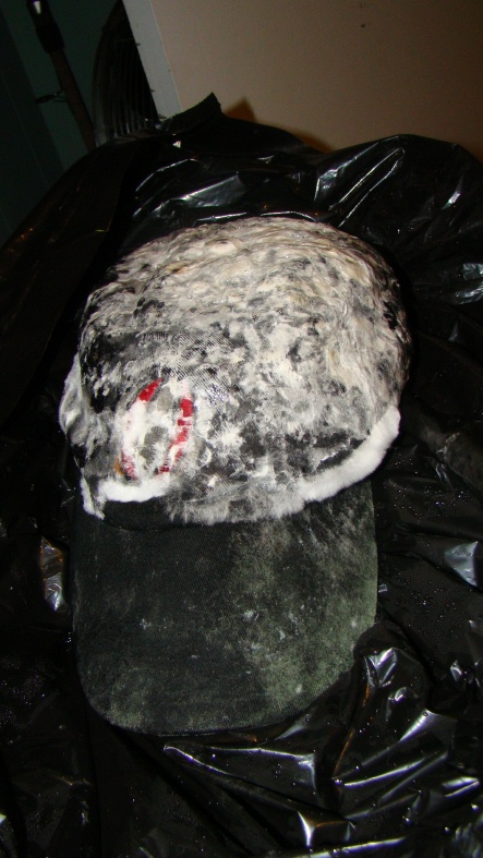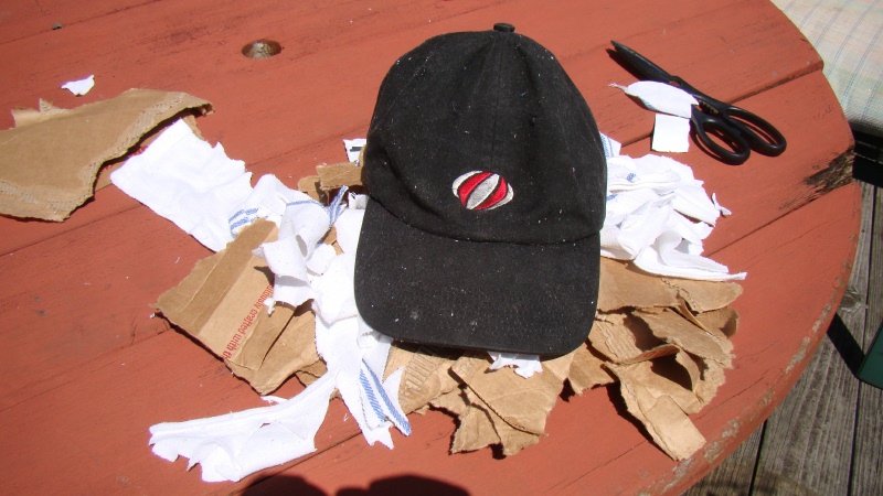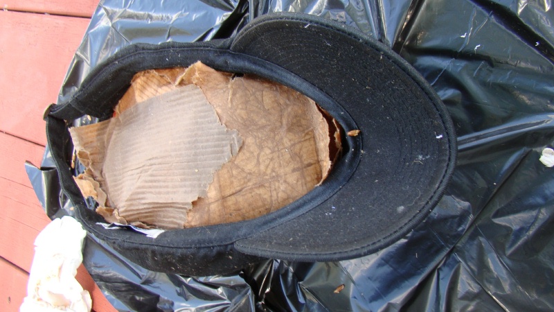old baseball hat , rag , old pizza box , and my paycheck