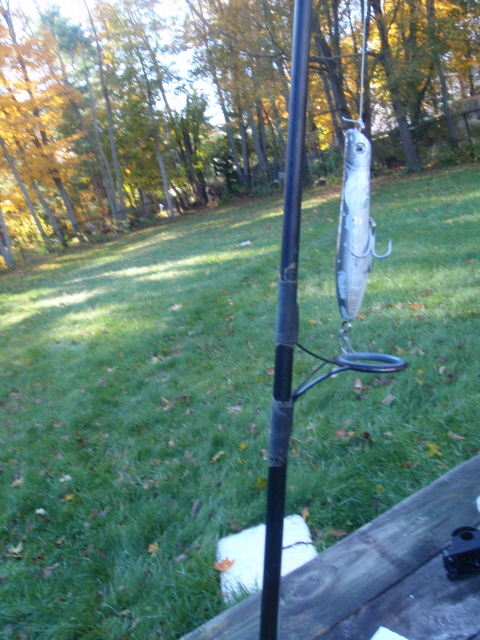 Allstar 1088 Spin I wrapped on the kitchen table a bunch of years ago. You would be hard pressed to find an uglier rod, but it does catch fish. Hardloy guides with discolored black wraps, sic tip, Fuji seat(slightly out of line), missing but cap. Makes you wonder how I could ever part with it? Blank is worth $100, let's try $100/b/o.
