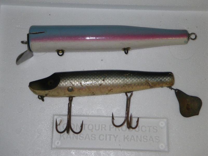 Eddy, I have the large musky Heddon Flaptail if you want to borrow and copy it. Nice plug. Here it is with a large conrad to give you an idea of its size. Hook hangers are pinned in by screws from each side.