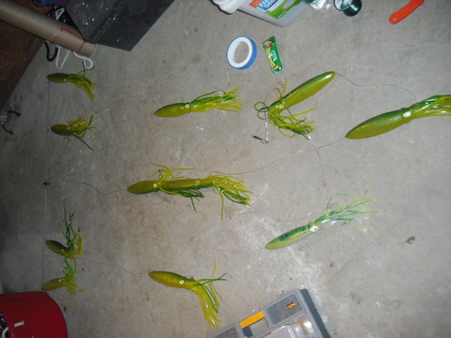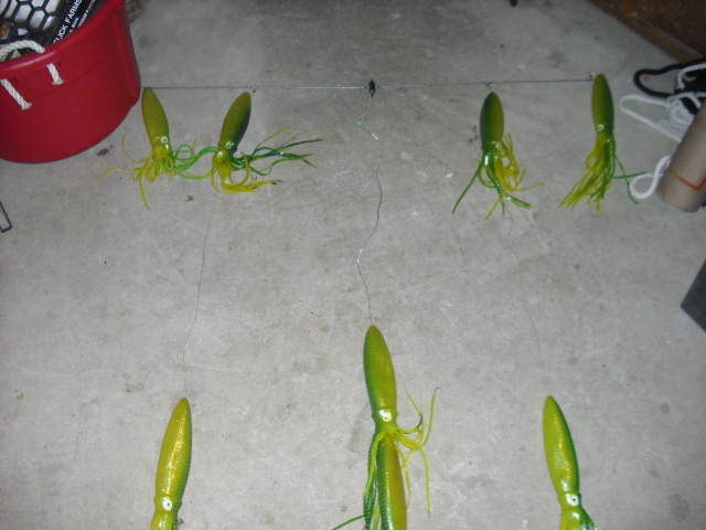 4 foot bar, 18" chartreuse squids, used a couple of times. bought at RNR a couple of years back. no bag. $60 or trade for pluggage