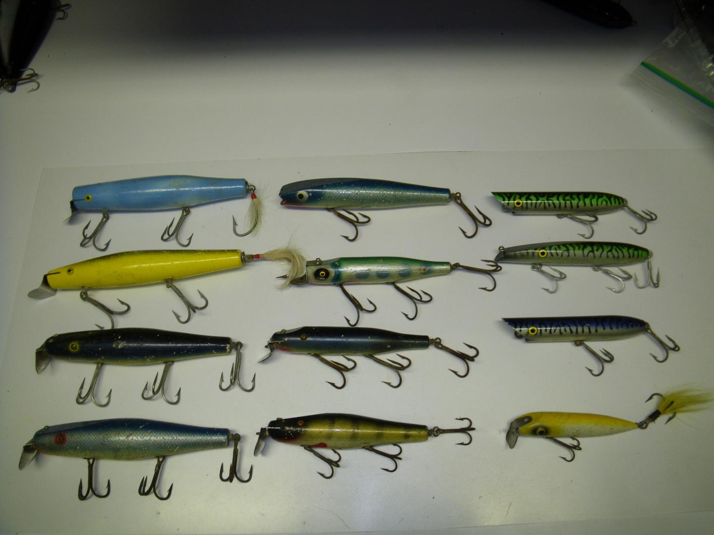 Could you swag a price for all these? That blue mackerel popper might be hard to come by, I don't know. I really don't know anything about vintage plugs, collectibles, prices, and all that. Maybe I should just fish them.
