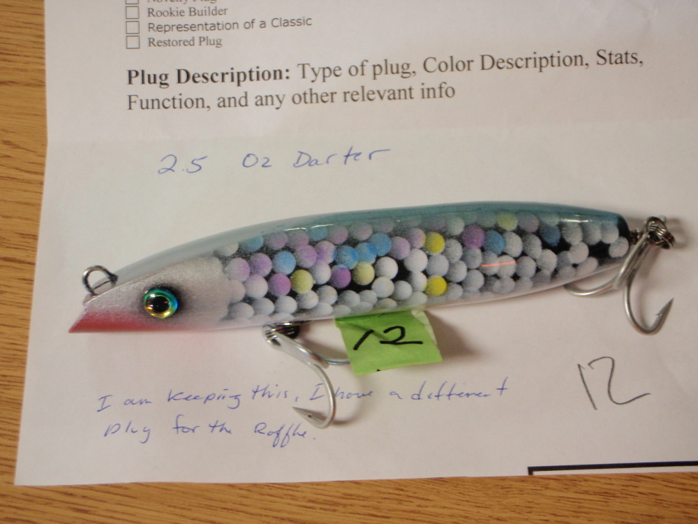 plugfest was awesome. I can not believe the caliber of work out there. just amazing. Thanks to all the builders who donated to the raffle table. I won a sweet plug donated by angler 229. Thanks to numbskull for the darter.