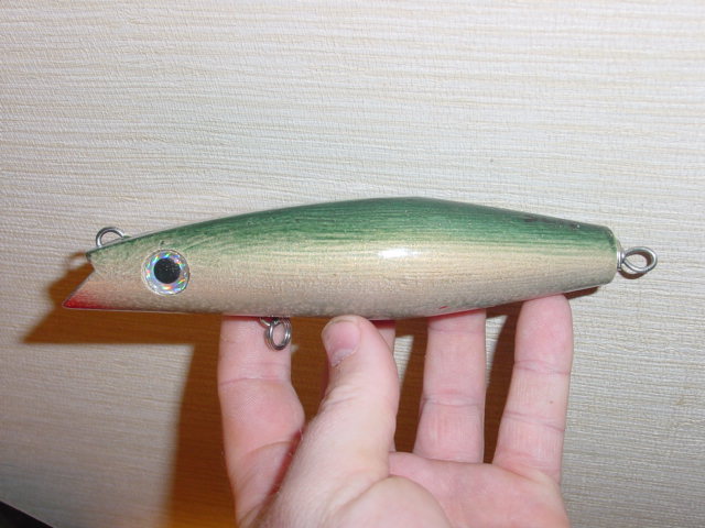 looking at the pic i think its a popper, if its not a popper its some other surface plug, maybe a big pencil. and i think i see some mack stripes in there. hmmmmm, how big is that eye?
