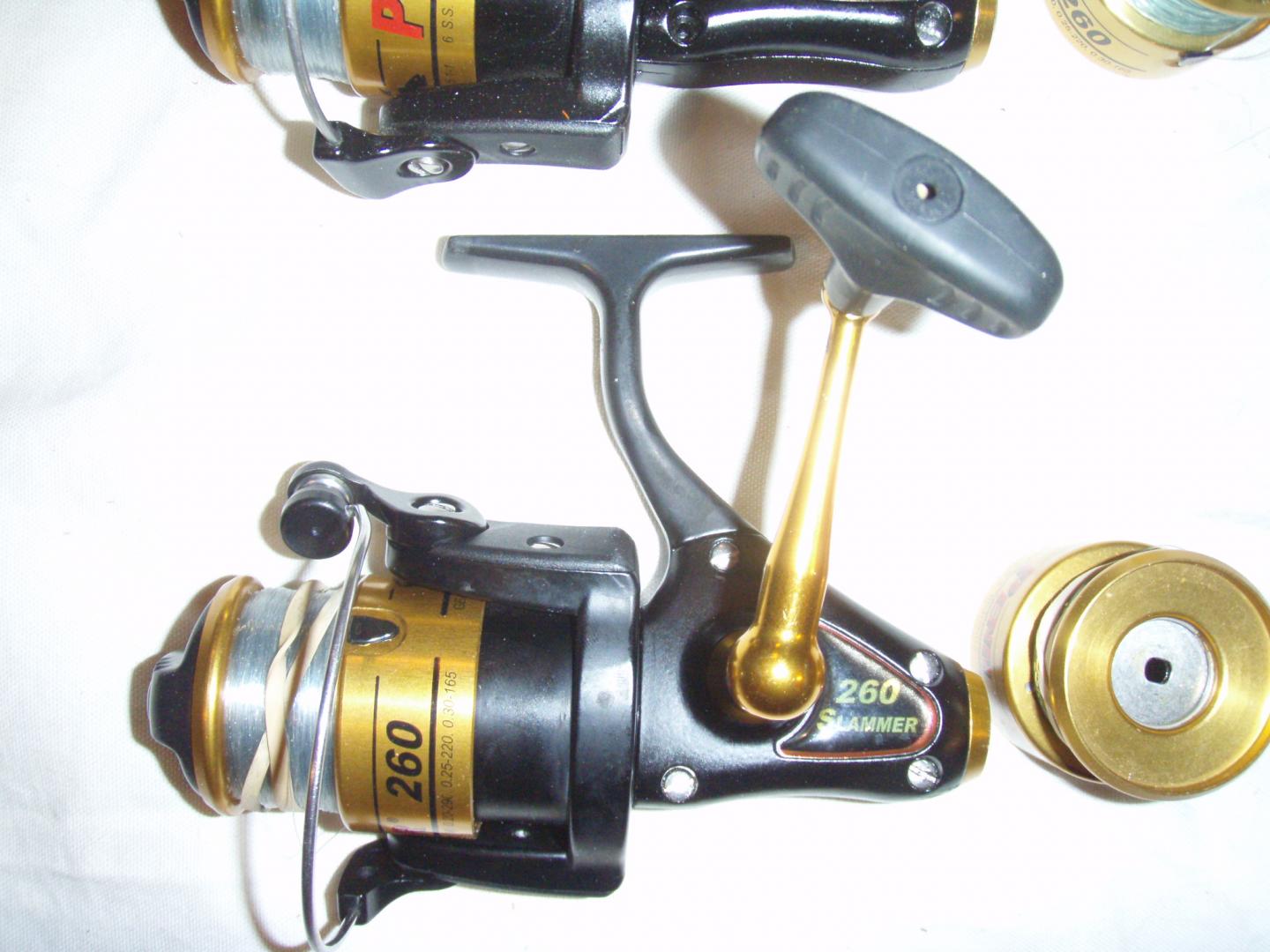 Penn Slammer 260 and 360 Spinning Reels - Four of each in good condition. Meticulously maintained and serviced twice a year. Each reel includes an extra spool. $70 for each reel or make an offer. Shipping included.