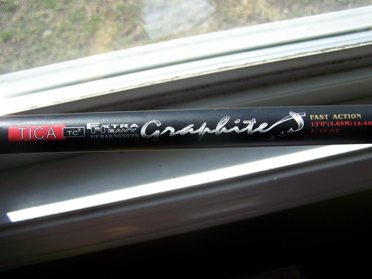 For sale used Tica 12ft graphite surf rod, great for throwing bait or chunks. Rod is rated 4 to 10oz and will throw 8oz all day.