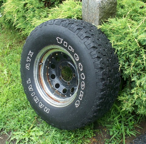 WITH RIM I believe it's a FORD RIM. $50.00 cash. ---> you pick it