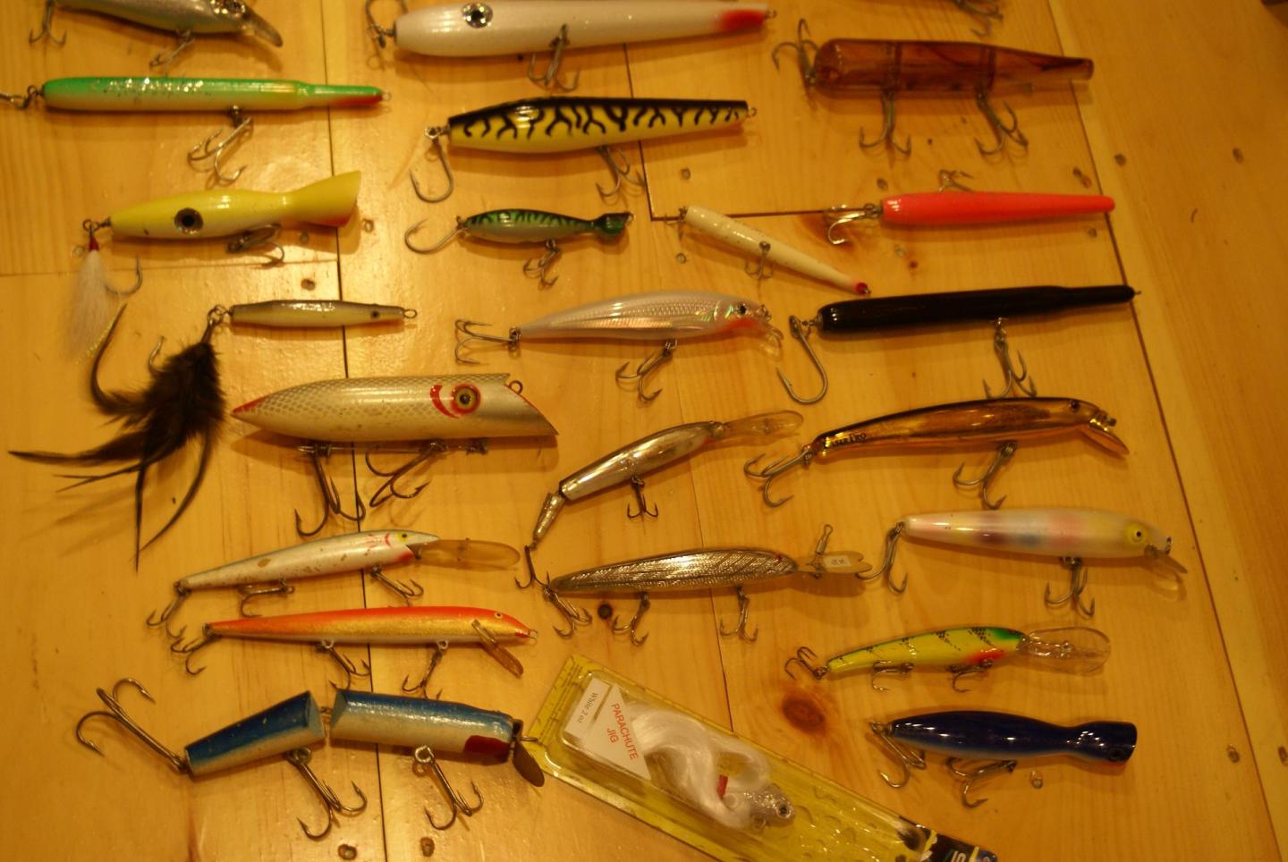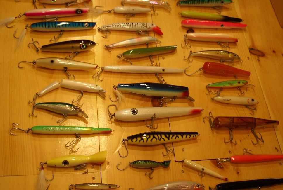 I HAVE A LARGE GROUP OF PLUGS FOR SALE. 57 IN TOTAL.SOME NEVER USED SOME BEATERS. THIS IS A GREAT DEAL. THERE IS EVERYTHING,NEEDLES, POPPERS ,PENCILS, DARTERS ,DANNYS, TOPWATER, AND SWIMMERS. THERE ARE SALTYS,GIBBS,AFTERHOURS,CAPE COD TACKLE,GAGS,ATOM,STETZKO,BOMBER,RAPALA,REBEL,SUPER STRIKE, HEDDON , AND MORE. 30 WOOD AND 27 PLASTIC. 250.00 DOLLARS FOR THE LOT WILL TRY TO POST PICS.
