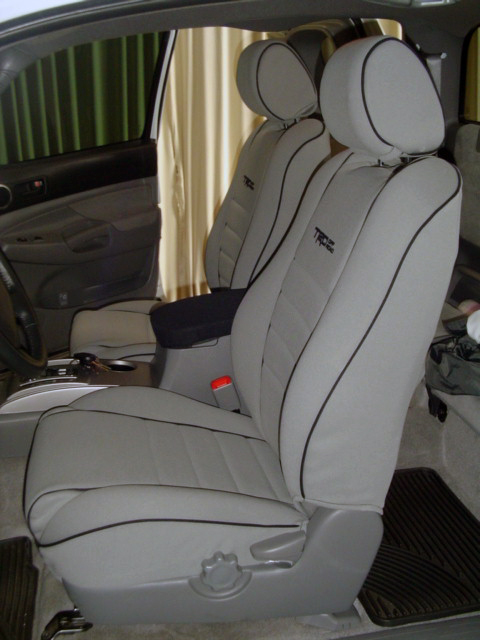 Still have a set, minus the headrest on one seat, even though I sold the truck years ago. These are for first gen Tacoma's with the exterior and interior revision (2001-2004) with the twin bucket seats. They are for the gray interior but would probably even look decent in the tan interior. Color is gray with dark grey piping, very close to what is in the attached photo (which are not the actual seat covers).