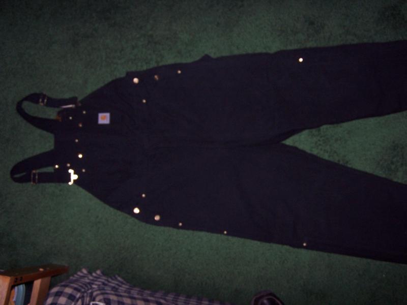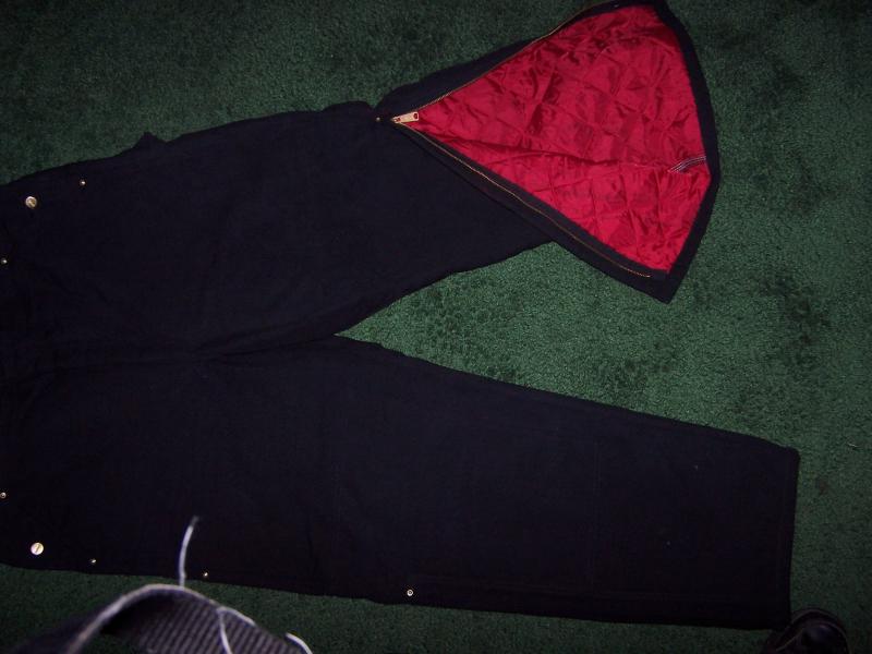 Wore these once....they are in like new condition. Size 44x32, Black with red pleated lining. great for Ice fishing.