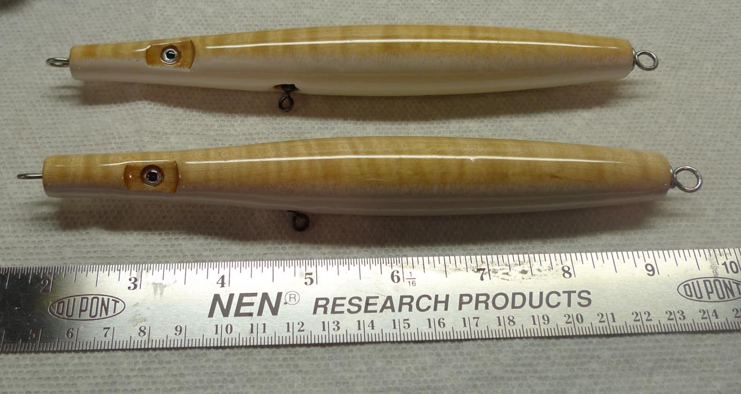 gorgeous work your needle looks like a dead on clone of a beachmaster wadd. Curious about the swimmer with the eyes down the side of the plug does it give a fish more of a target to hit?