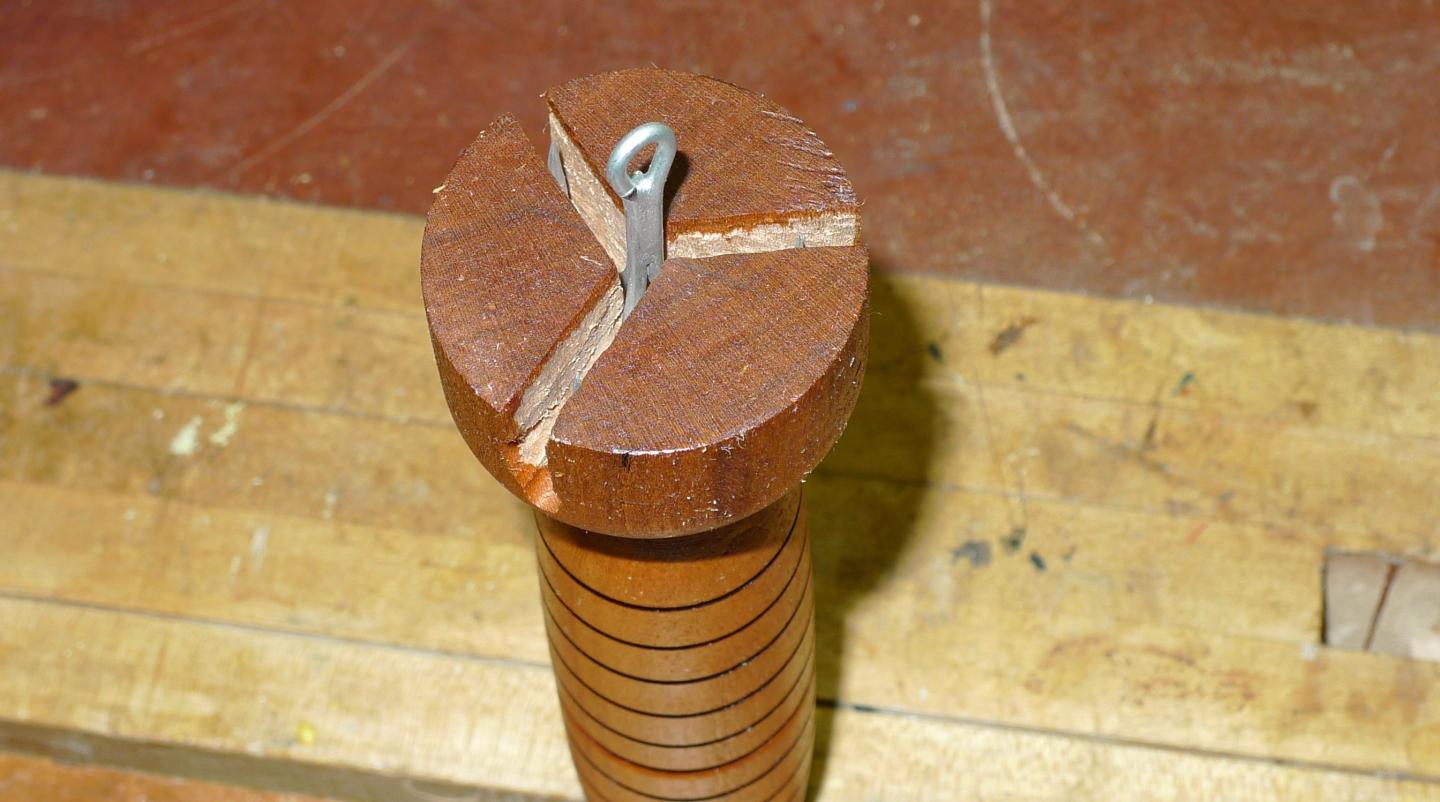I had to make one of these treble hook twister tools... Turned a piece of leftover cherry from my brothers house in VT.... machined 3 slots at 120 degree angles from each other using my Dremel tool and a cutting drill bit.... made pre-slot with thin kerf hand saw. Burned grip rings with drawn wire after making thin slots with tip of skew