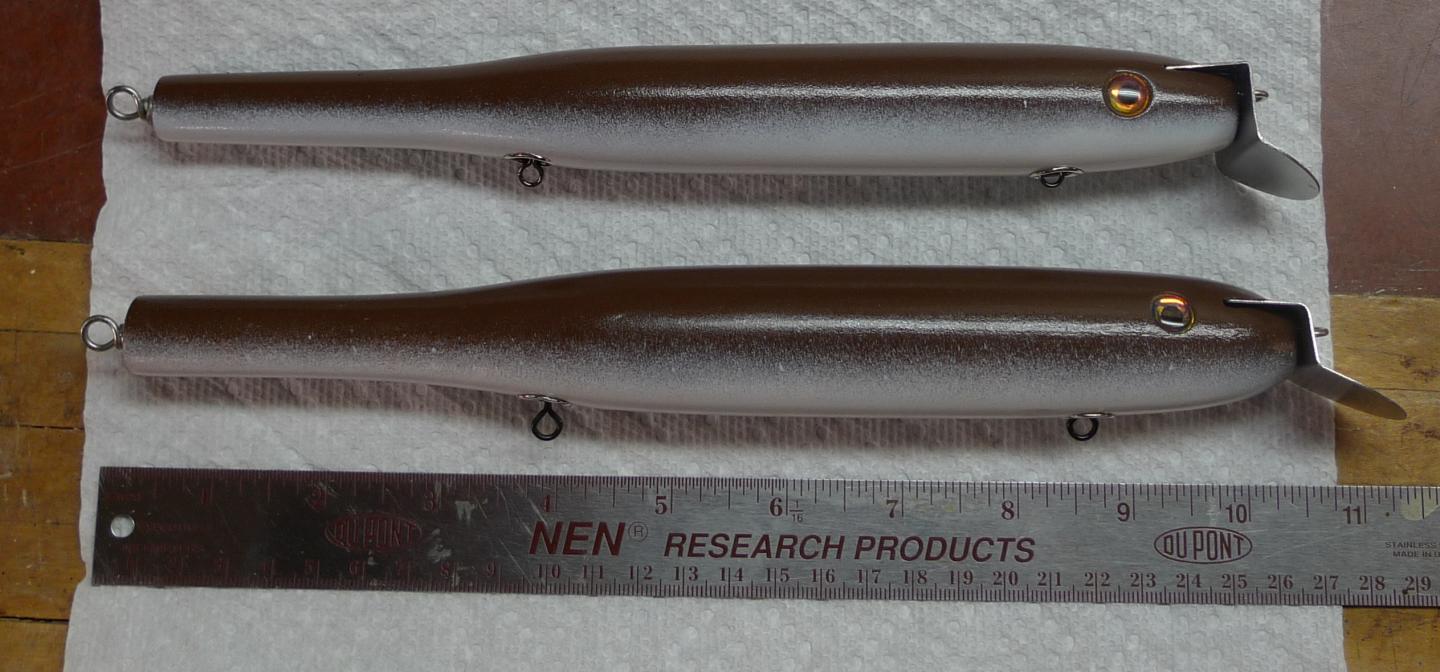 I saw that Paul made a few GTS 3 3/4 plugs and some supersized ones as well last winter. I made 2 of slightly different length and diameters and used A40 lips ... I had some flat ones that I bent in my metal vice.