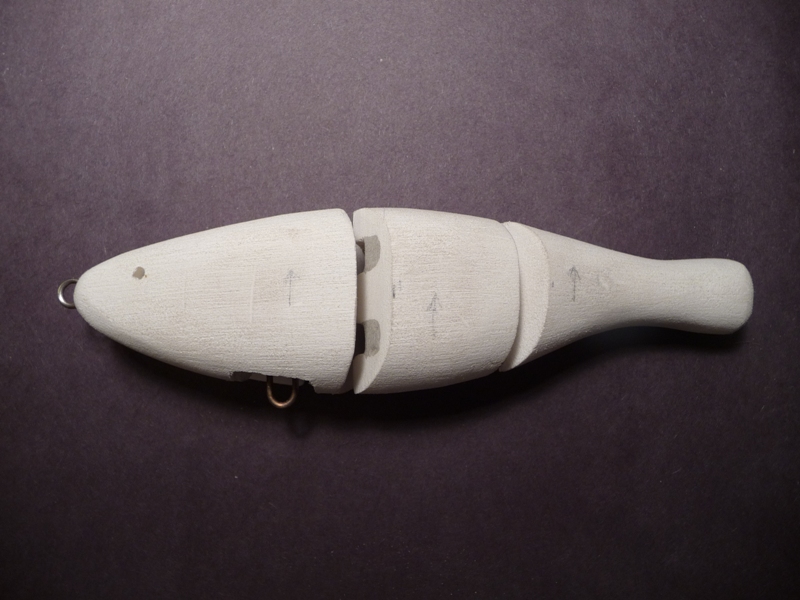 Messed around with swimbaits a couple years back. Have done real well on smallies with them. A few stripers too. The weighting and the hinges seem to be the most important part. More weight in the front section and less in each of the other sections. The tail has to be pretty loose for the bait to swim right. Once you get it down they are a real cool bait. A shot of one of my larger striper sized ones in this thread: http://www.striped-bass.com/Stripert...uiet-here.html Fins and tail are lexan cut to shape. I used screw eyes for the hinges.
