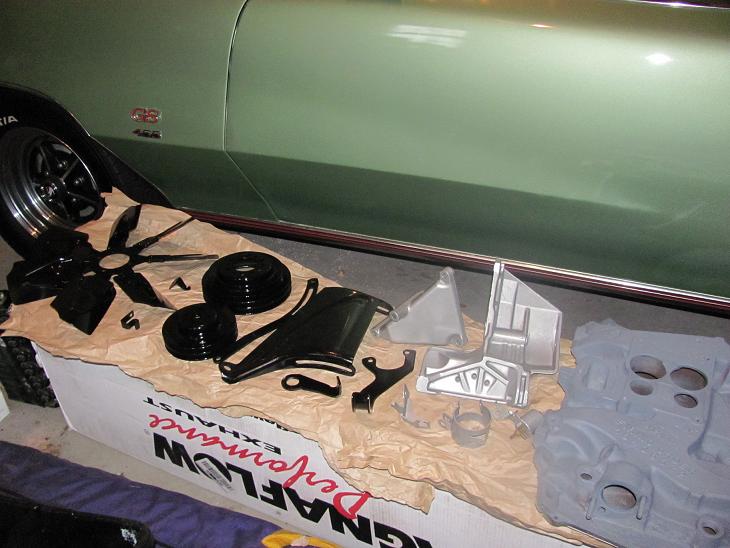Brackets pulleys intake and stuff..