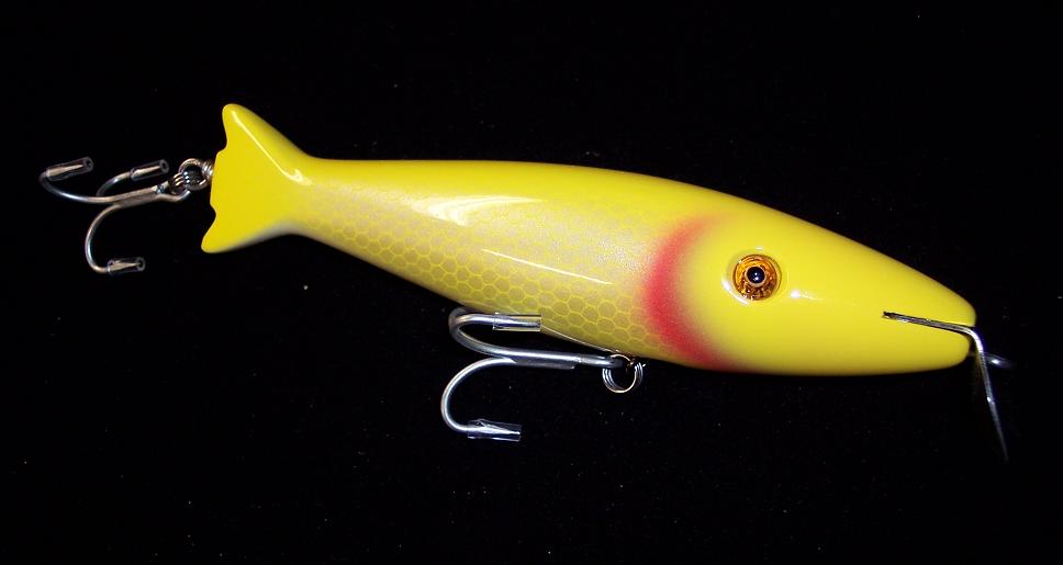 I had a few plugs that I was unable to wire for the "Fest" so here they are complete and wired! The Yellow Flash swimmer with the surfster lip is a "Preasel".....a combination of my "Prey" swimmer and a snook Weasel complete with amber glass eyes!