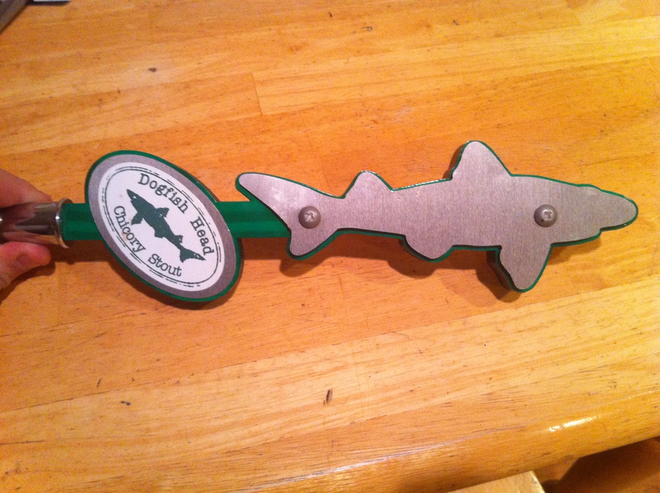 For trade is a used Dogfish Tap handle, thing is sweet, green laminated wood and metal dogfish cutouts on both sides.