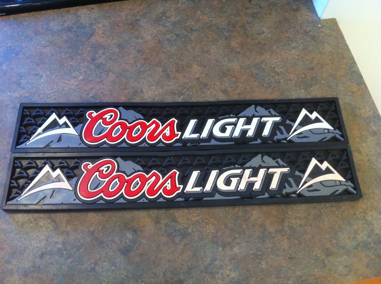 Coors Light bar mats, one is slightly discolored, 20.5" x 3.5"