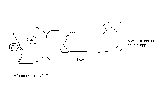 A popper type head, 2 inches long, big eyes, with a single siwash in the back. You would put a sluggo type rubber on the siwash hook. This would make a sluggo with a popper head. Also could do a needlefish type head.
