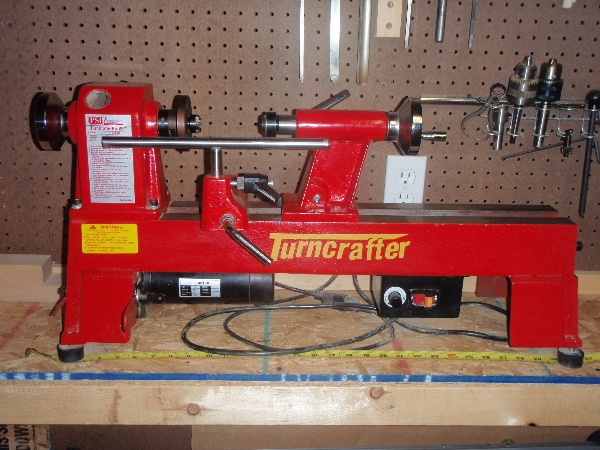 VARIABLE SPEED Turncrafter Pro lathe with extension bed and custom 10" tool rest. I will include 2 sets of chisels and a drill chuck for center drilling. I bought this lathe brand new.