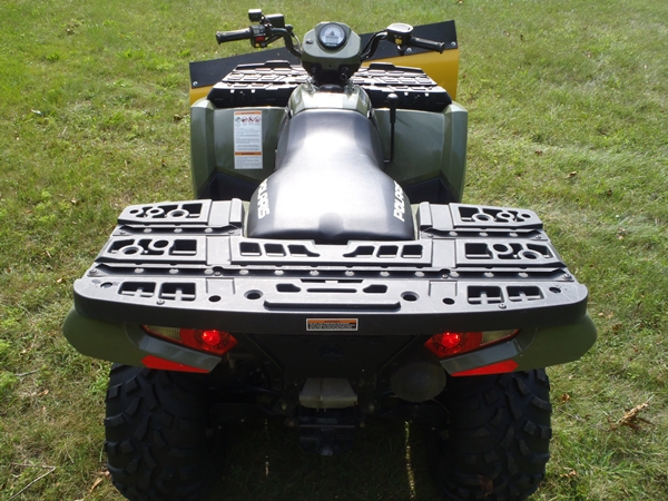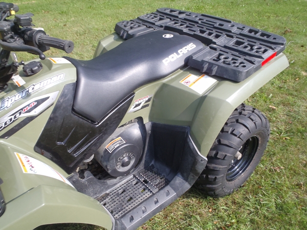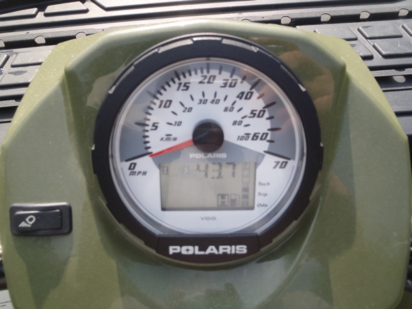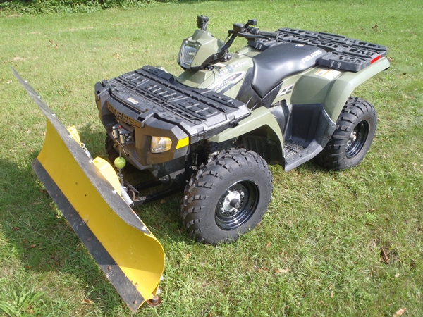Little use, mostly used in the winter to plow my driveway. The machine had no problems plowing last year with all of the snow we had. Still has factory safety stickers on it. The little nubs on the tires all still there. I bought the Polaris from Armand's Power sports in Halifax Mass. I brought it to the dealer for maintenance and recalls. I have the title in hand.