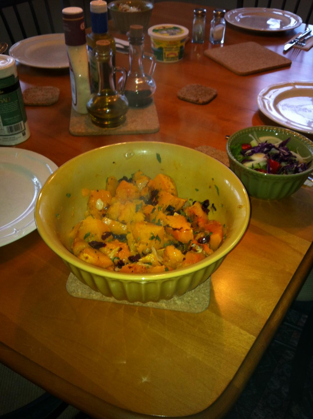 Roasted butternut squash with fresh sage, caramelized sweet onion and dried cranberries.