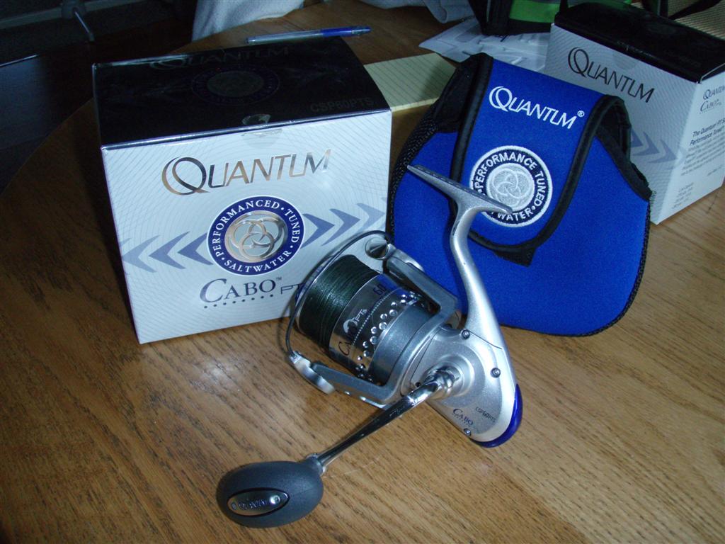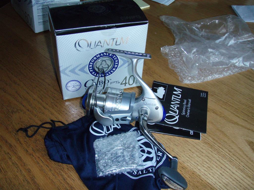 The 40 is brand new, never used or even spooled up. Comes with box, bag, paperwork, Quantum reel tool, etc..