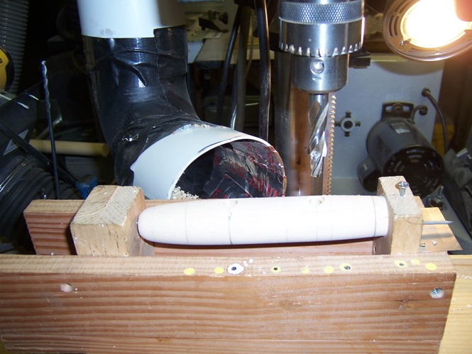 take a look at my thread on upgrading my shop.. there is a picture of the plug drilling jig on one of my lathes ( the one on the green bench)..