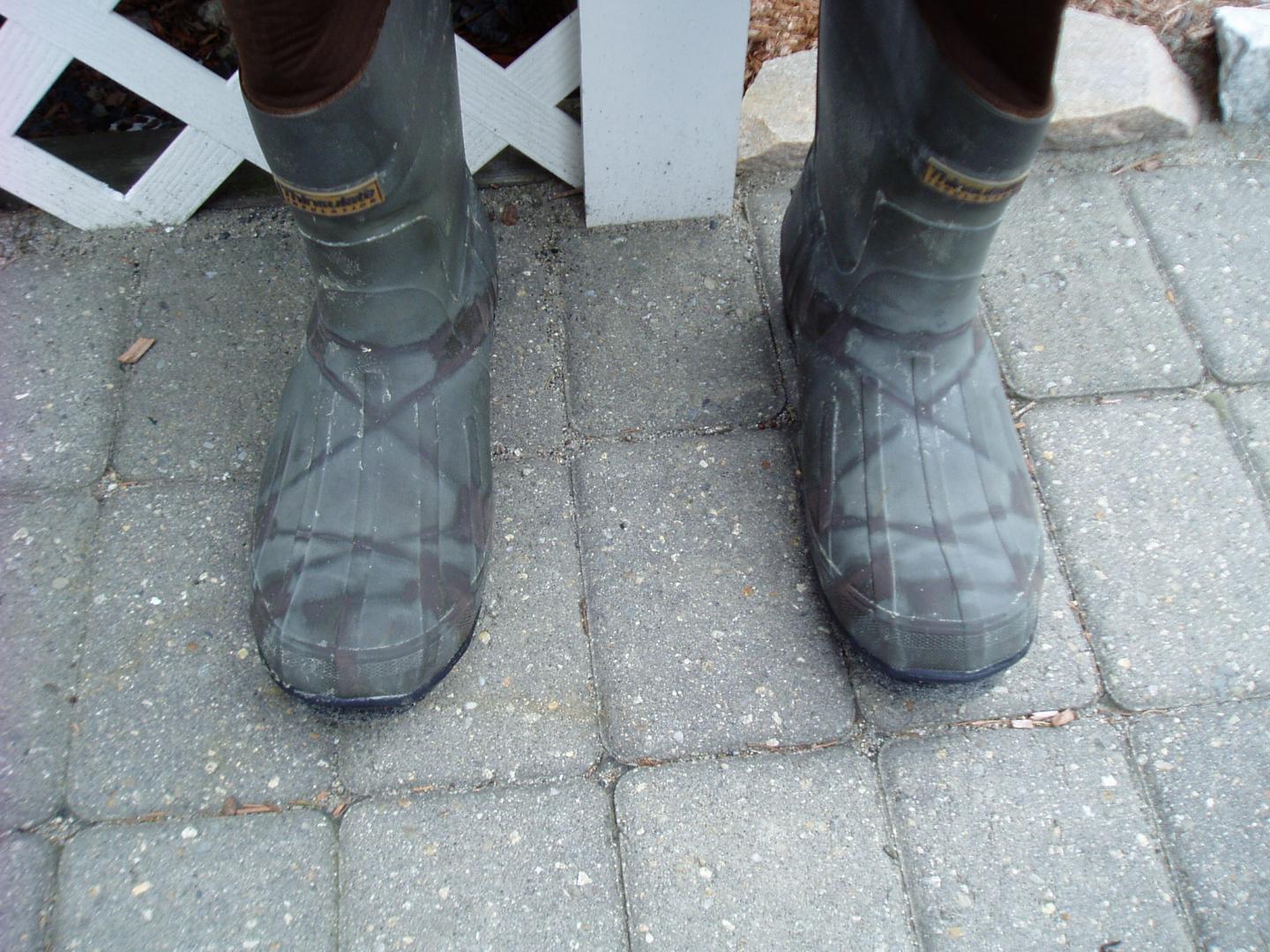 these are felt sole waders, size 9 boot medium. excellent condition, with absolutely no leaks! the boots have darker patches on them from korkers ( see pics) only worn in late fall season.$45.00.