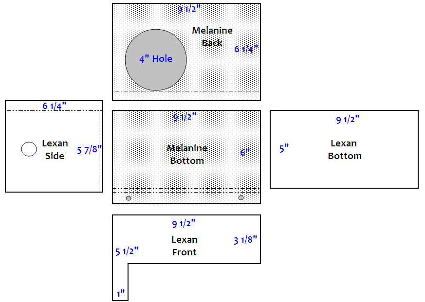 - Made from 5/8" Melamine and 1/4" Lexan.