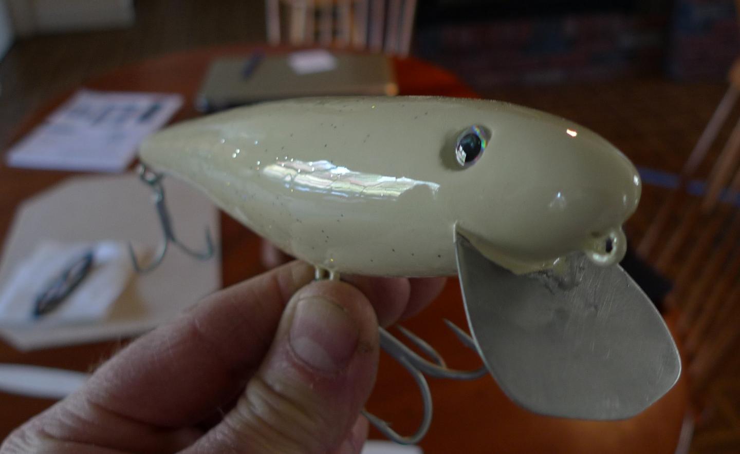 The keeled handcarve takes some of the bottom shape from the stick shadd and still uses a lip for a nice wriggle. This is rigged with 3/0s.