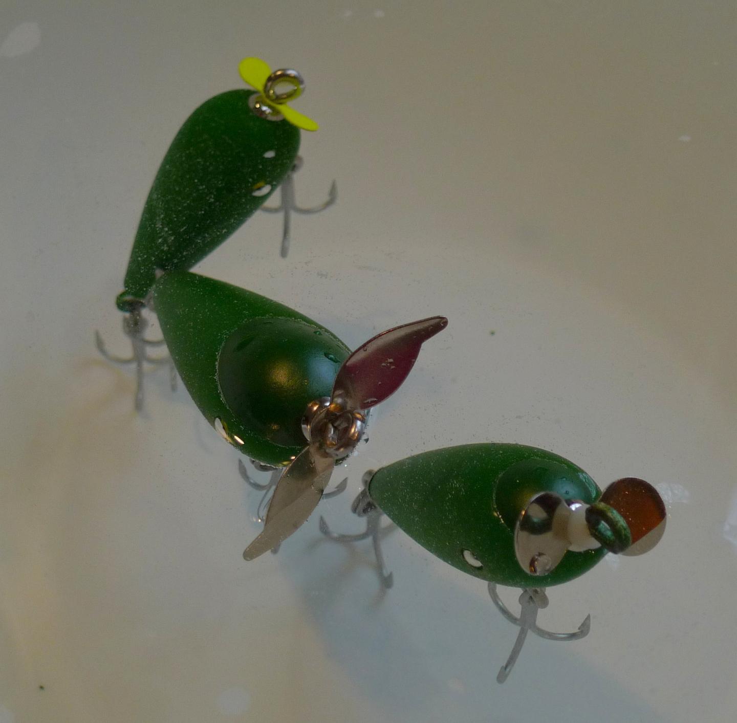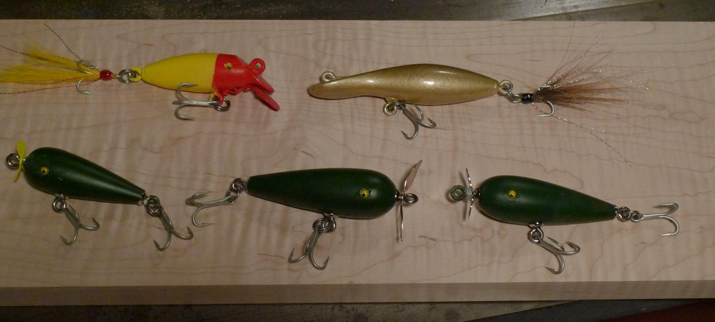 I am going up to fish the Raquette River (Adirondacks) above Axton Landing (just below the falls) for Walleye and Pike next weekend so I have made a few new FW baits... they are 3-4" long which seems tiny compared to my SW striper plugs. I am not bothering with epoxy sealing with this batch... if any are good I will seal on the next go round... the bladed buzz baits will be good for smallies and LM later in the season after spawning season is done...