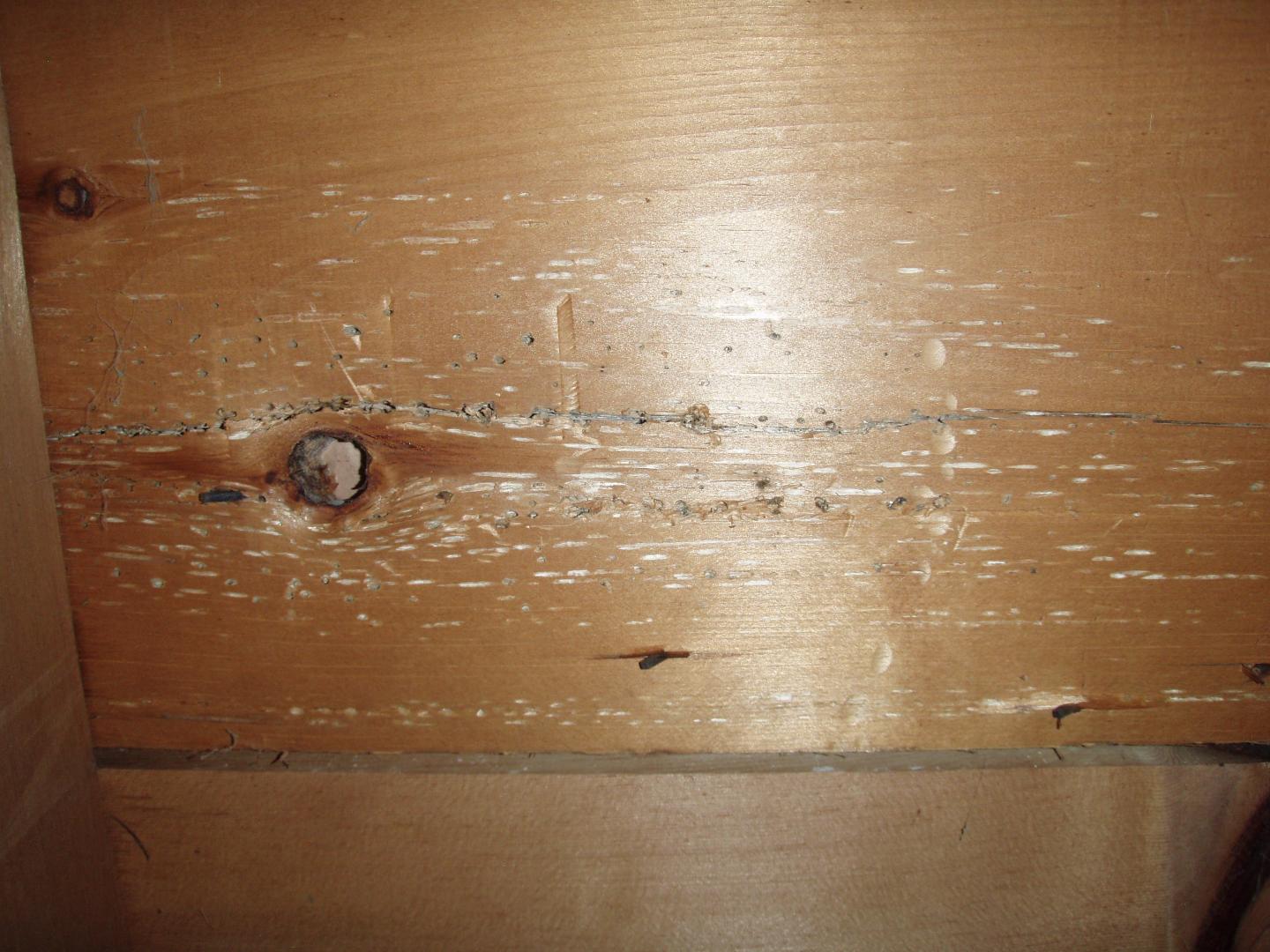 i whacked it and no sawdust at all came out. it's concentrated in one board.