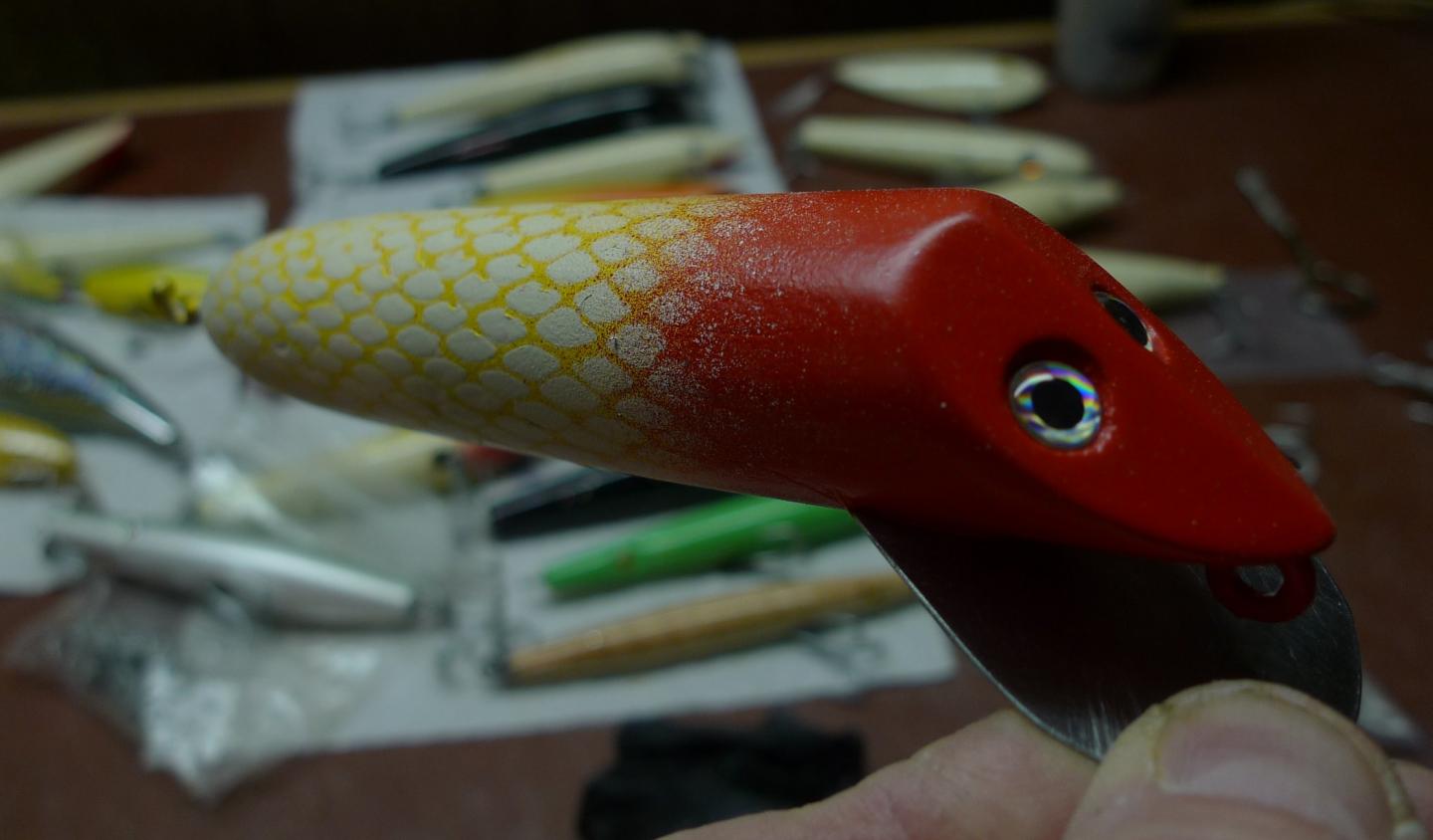 So I kinda modeled these after a Heddon Vamp but with straight (non-cupped lips) Both are made from WRC and have a slug of lead about 1/2 way back in the belly.