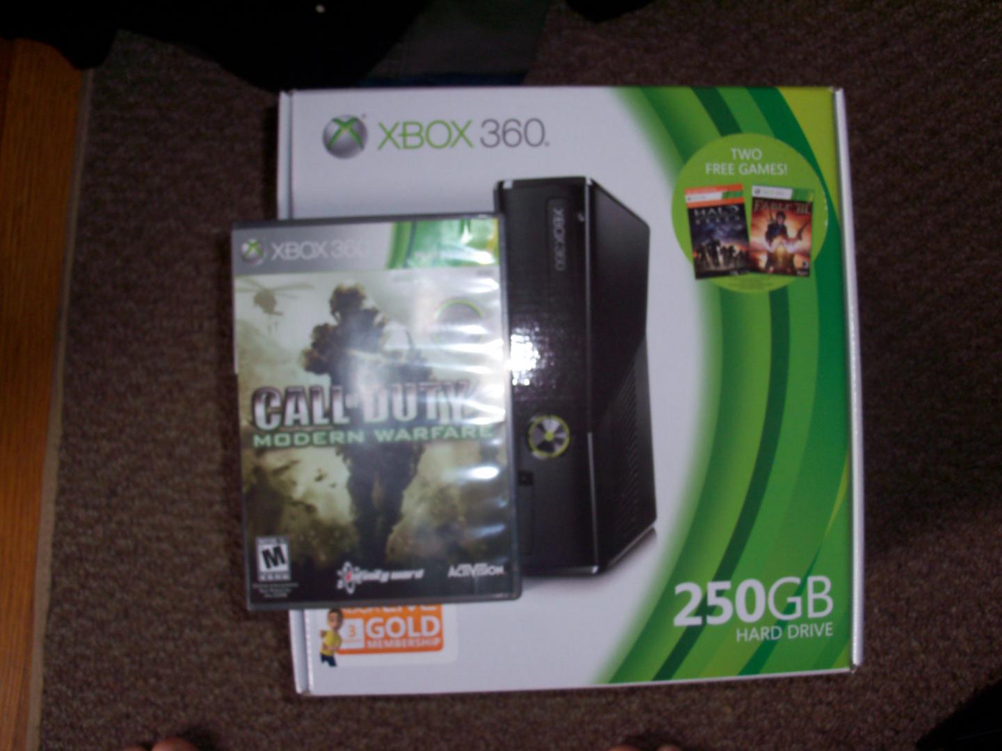 I HAVE A BRAND NEW STILL SEALED XBOX 360 WITH 3 GAMES INCLUDED ARE HALO REACH FABLE 3 AND CALL OF DUTY 4 MODERN WARFAR.IT ALSO HAS THE HUGE HARDDRIVE 250GB.THIS PACKAGE COST 350.00 WHAT IM LOOKING FOR IS........ STILL SEALED NEVER OPENED.