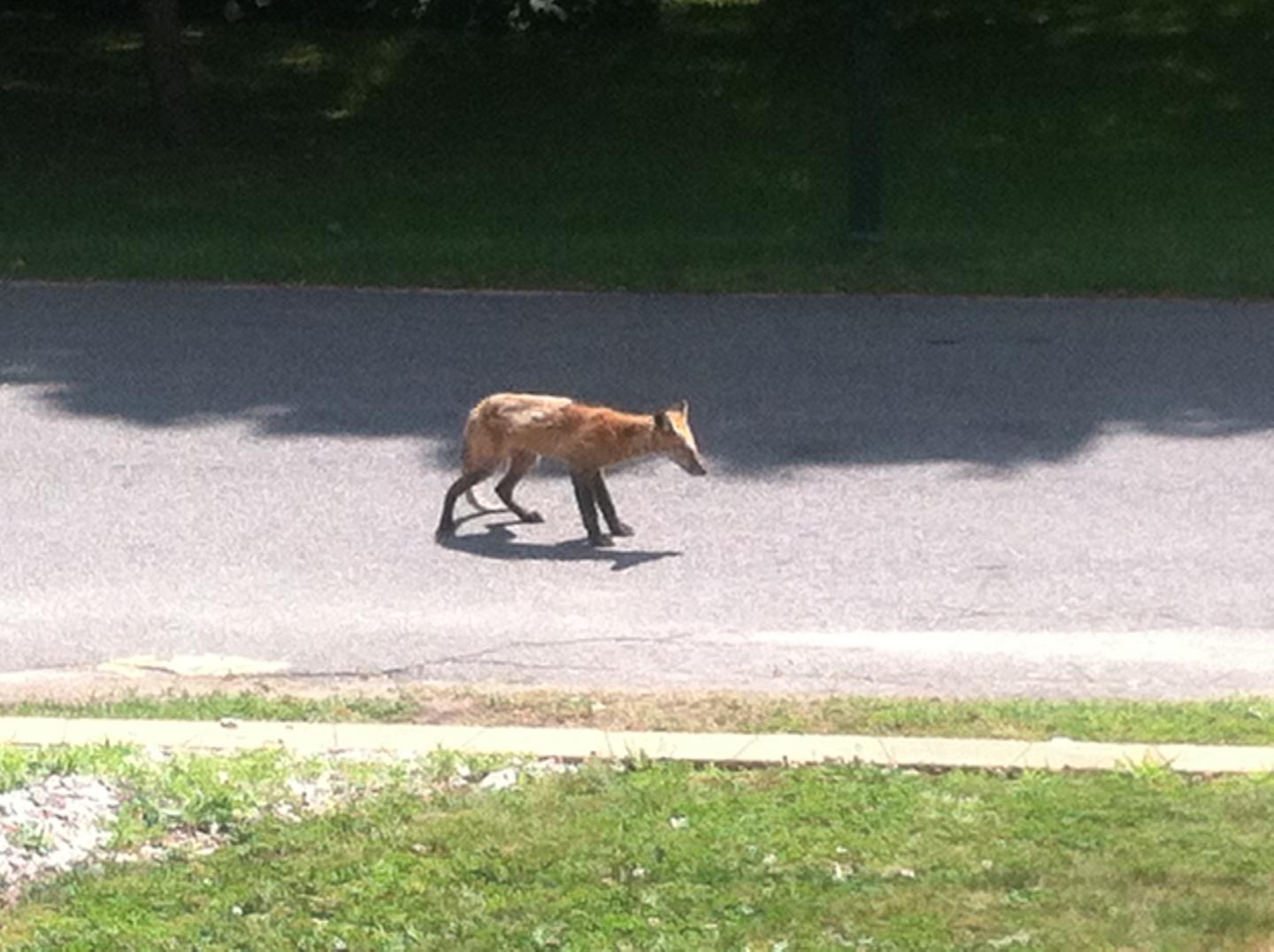 a health fox is a good thing to have around. they control rabits, mice and other rodents... they rarely are seen by people in day light hours... only a female with pups will get caught out late in the morning or early in the evening...