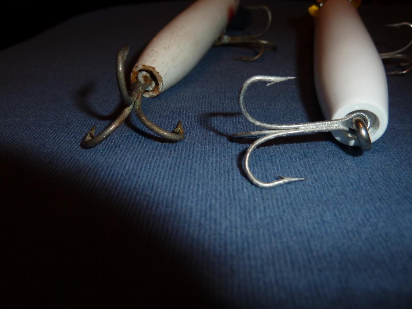 It has the bead eyes and a different lip bend than most of his other plugs. The lip is bent with some small straight bends instead of a curved shape like his other eel swimmers. I unfortunately do not have any Goo Goo hook hangers, but I was able to steal one from my stash of Arbogast lures.