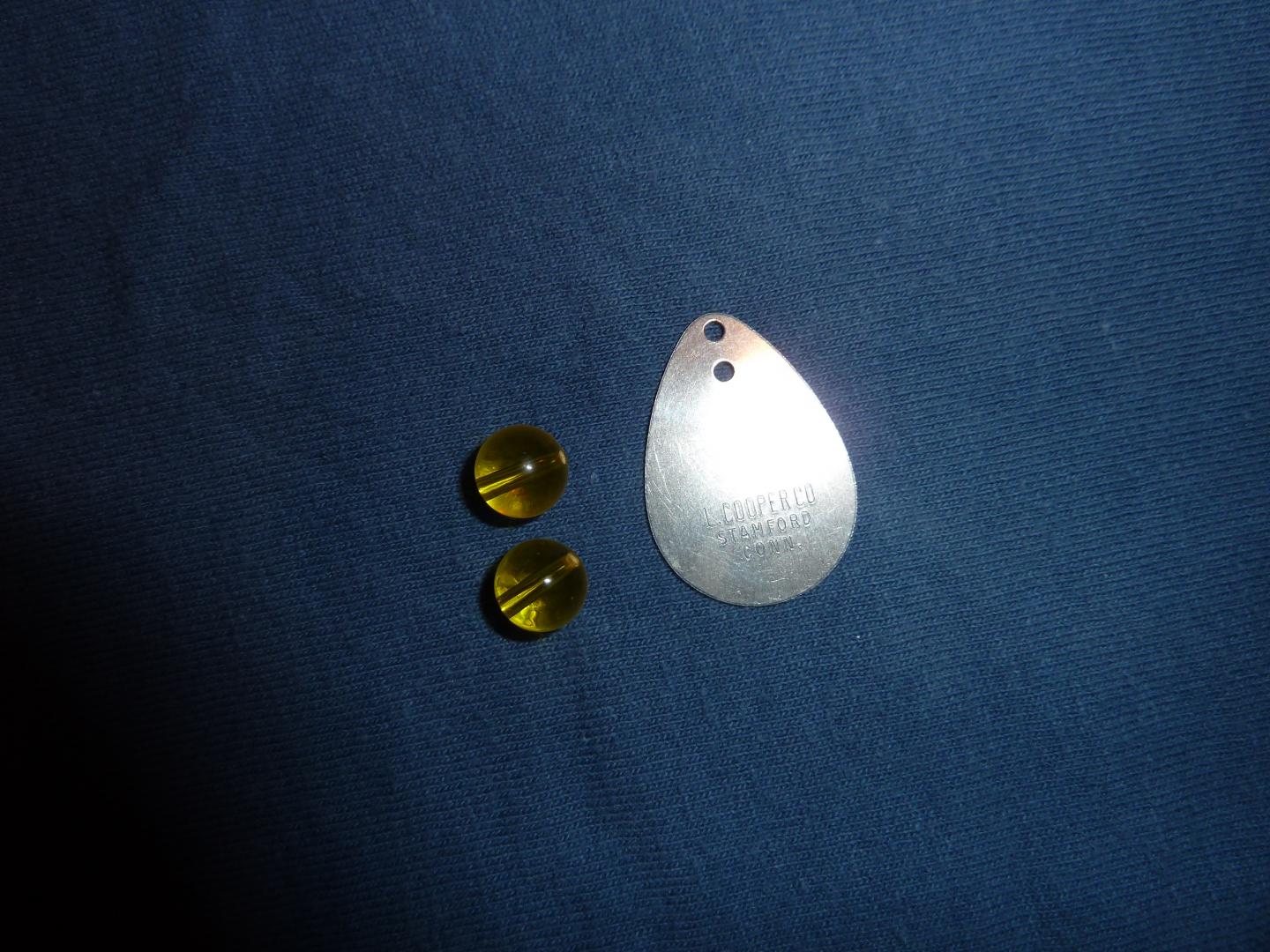The lip and beads are vintage original goo goo parts and the hooks are vintage mustads.