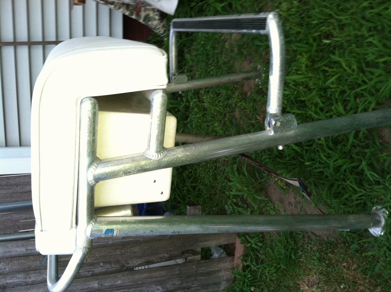 Birdsall marine leaning post with 4 stainless steel rod holders. Stainless hand rail etc.