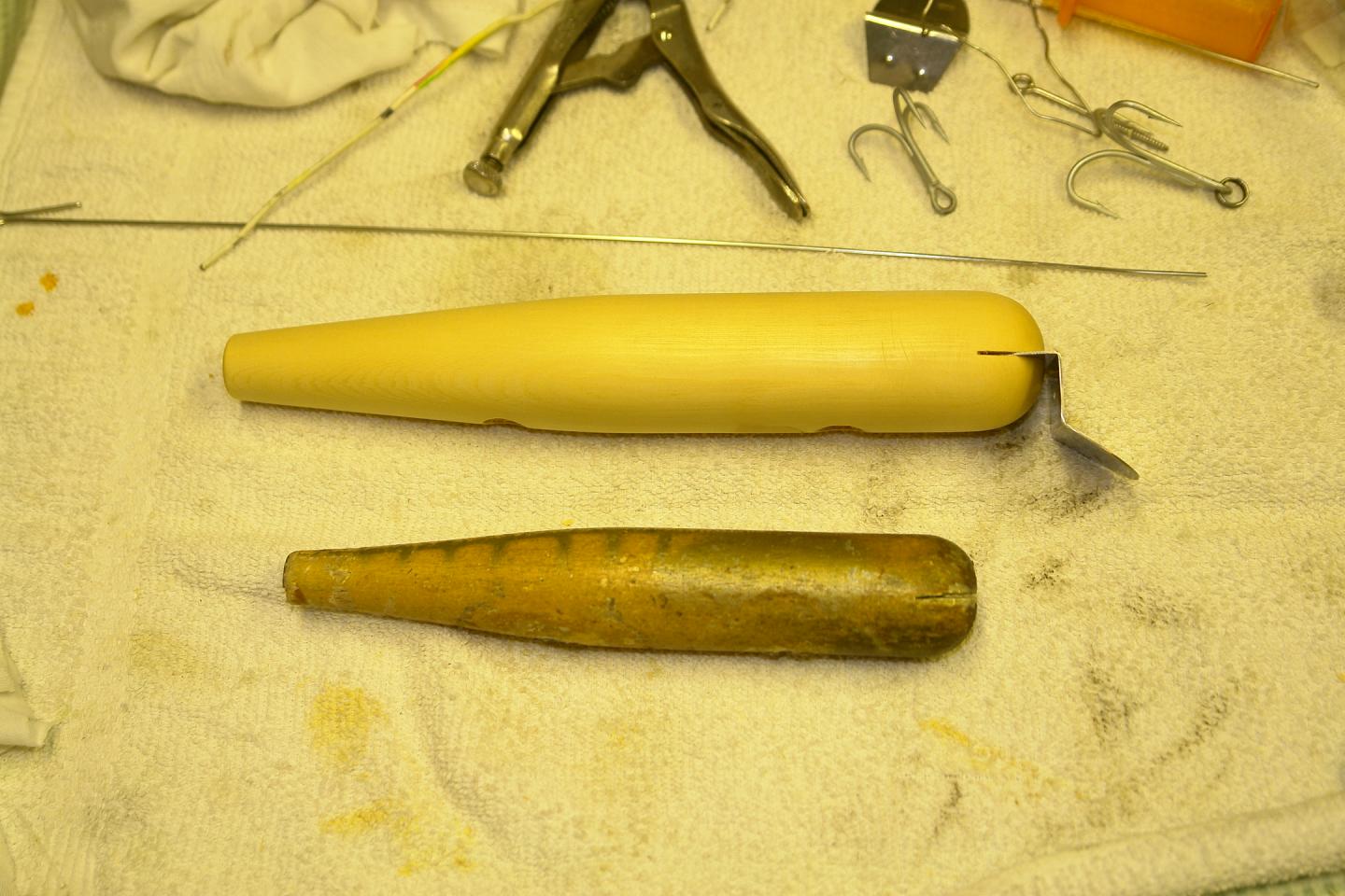 I did rebuild the captain bill i showed you, new swivels, tail weight, thru wire and hooks, tuned it to swim on top, swims like a surfster, but cast way better.
