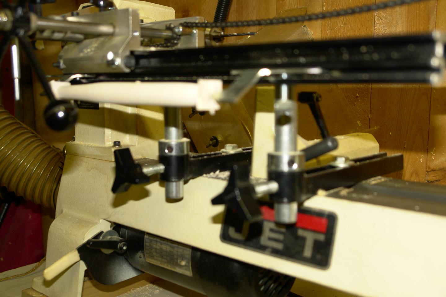 I've talked the "vega" guru @ Vega about many specifics and aspects of set up and use. He answered with more generalities and "should works". So basically get the basic answers and tips then you adapt your own comfort zone. I do not use the spring loaded lever follower. I found it much simpler to regulate the bite pending on the different woods while being in command and not relying on the template being traced with the bit automatically following a cutting. I guess in a perfect situation the spring in use has it uses but once I stopped dealing with the stop collar nuts I just use a lever mounted bolt on top to lock the cut for trimming. Once it's close to the diameter it's unlocked and you follow with a light hand presure until you get to the template design. Remember you always go down hill to avoid dig ins up a ramp. I have learn alot by doing many turnings. I still learn ways to make it better and easier. I say let the wood dictate the speed, depth and pressure you use. Like you know there is a load of experience on this site. We are all glad to help like the advice you give on the rod forum.