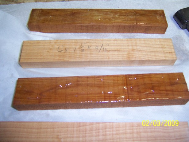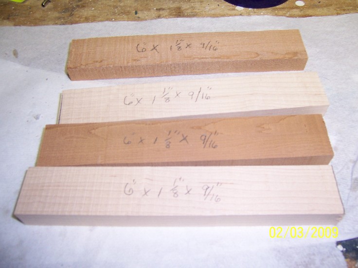 Materials : Gorrilla glue, 1 1/8"X 9/16" X 6" maple and cedar( to be glued together), I used WRC, if you use something else you may have to adjust your weighting, 2, 9" lengths of 304 SS maleable wire ( NJtackle) if is not maleable, it will split if you attempt to wire the plug as I will show... you will need 2 #1 swivels, I use Kroc SS swivels, you will need 2 #2/0 VMC trebles.. a lennght of SS wire approx .032" for making the fins and tail... you will need bucktail ( your color choice) and saddle hackles ( again your choice of color) and fly tieing thread... you will need a #1 pikie lip and 2 ...341 belly gromets as well as 2 nose gromets and a .375 tail gromet.. a 4 gram weight ( 15/64X1 1/8) for the body and a 2 gram weight for the tail, (1/4"X 1/2")I'm sure there is something else but lets get started!