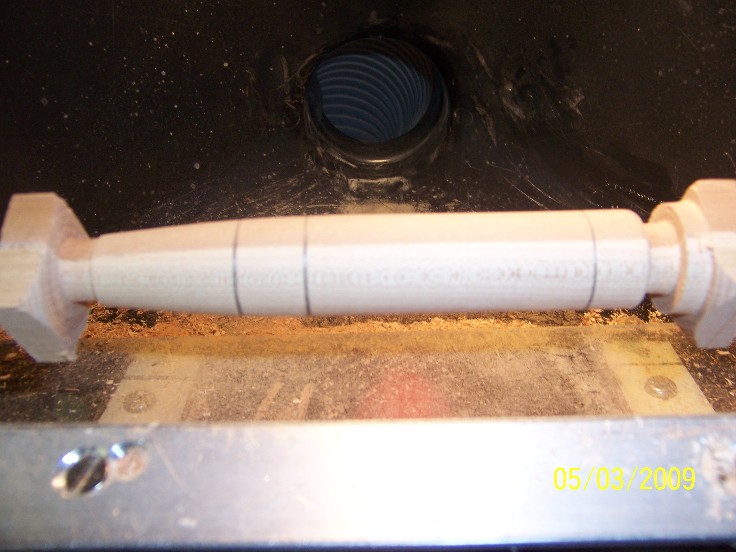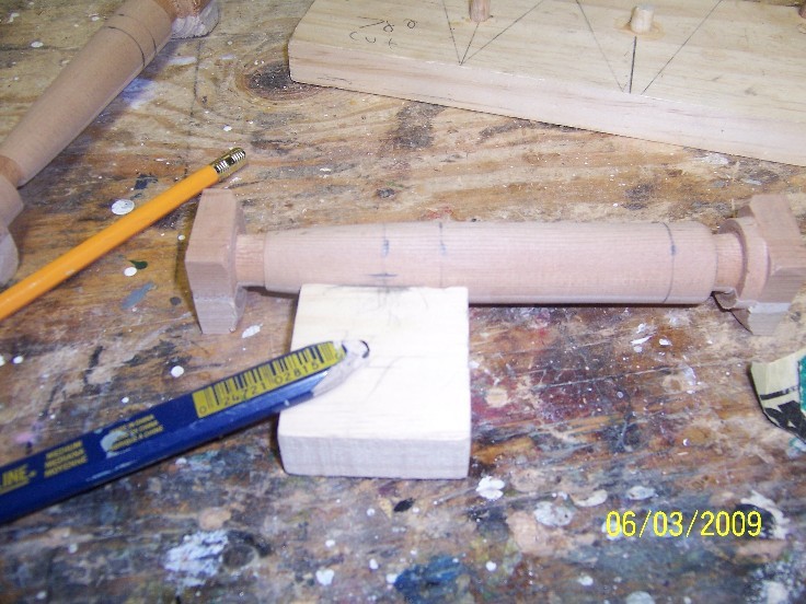 after trueing up the ends, either with a belt sander or a saw, mark you center, normaly I eye ball it, but here, you dont have alot of extra to work with, so an exact center is a must, find your center by marking the blank corner to corner, or with a center finder...